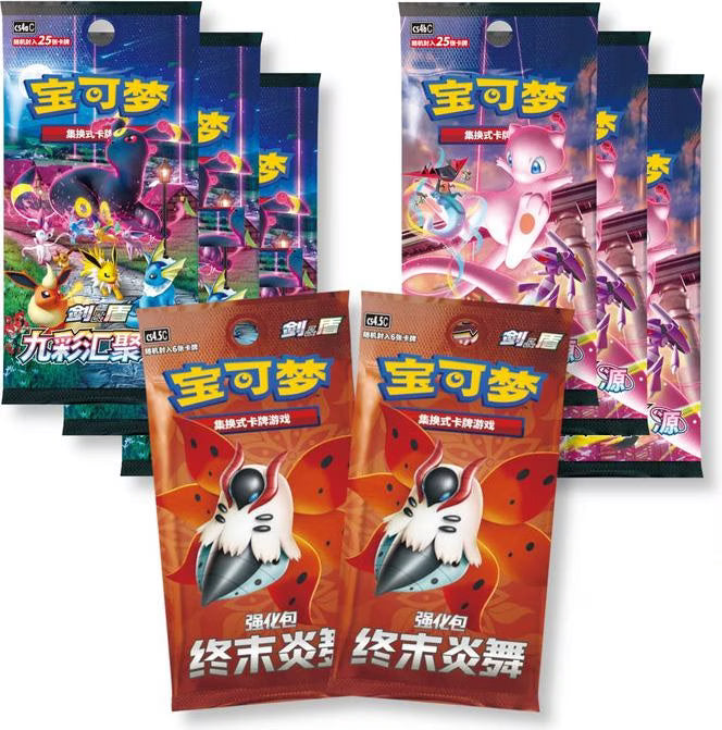 • 2 booster packs (6 cards/pack) of Pokemon TCG Simplified Chinese Sword & Shield Final Flame Dance (CS4.5)