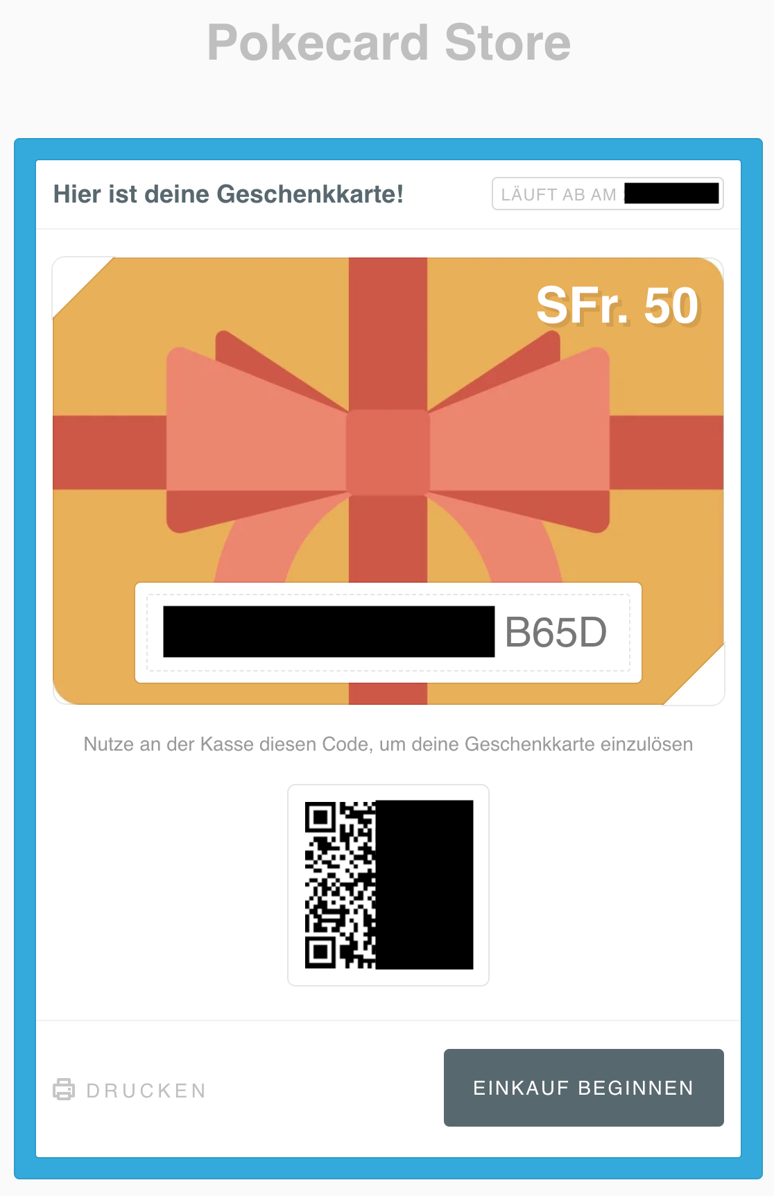 Les cartes cadeaux doivent être payées par carte de crédit ou Twint. Nous nous réservons le droit d'annuler les cartes cadeaux si le mode de paiement choisi est l'achat sur facture.