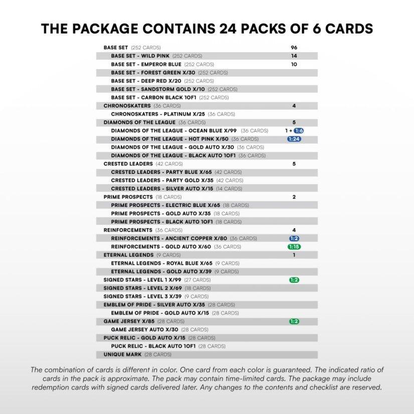 Contenu : 24 paquets de vente au détail contenant chacun 6 cartes