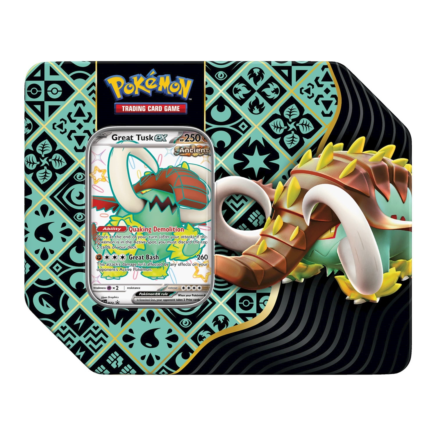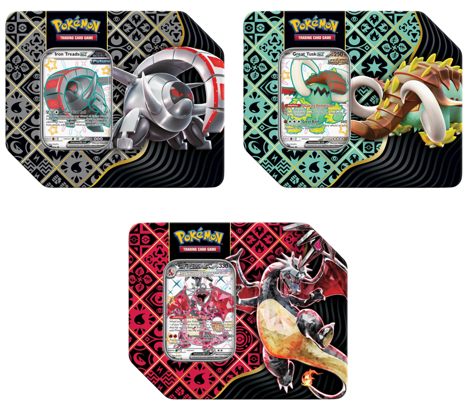Le set contient une tin de 5 boosters de chaque artwork. En tout, il y a trois Tins. Chaque tin contient une carte promotionnelle et 5 boosters Paldean Fates.