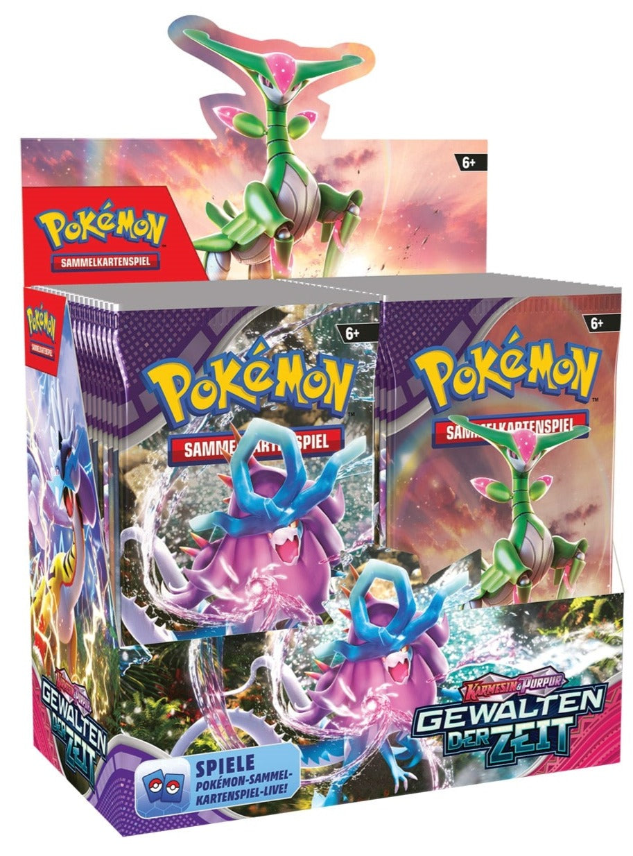 Les rangs des Pokémon Anciens et Futurs ne cessent de s'agrandir ! Walking Wake ex s'échappe du passé avec Raging Bolt ex, tandis qu'Iron Leaves ex assure la justice high-tech avec Iron Crown ex. En dehors de la Zone Zéro, Wugtrio et Farigiraf changent de type en tant que Pokémon Tera ex, et les Dresseurs Pokémon du monde entier se préparent au retour des cartes ACE SPEC aux effets d'une puissance unique. Une faille dans le temps amène des bêtes féroces et des cyber-visions au combat dans l'extension Pokémon TCG : Scarlet & Violet-Temporal Forces !